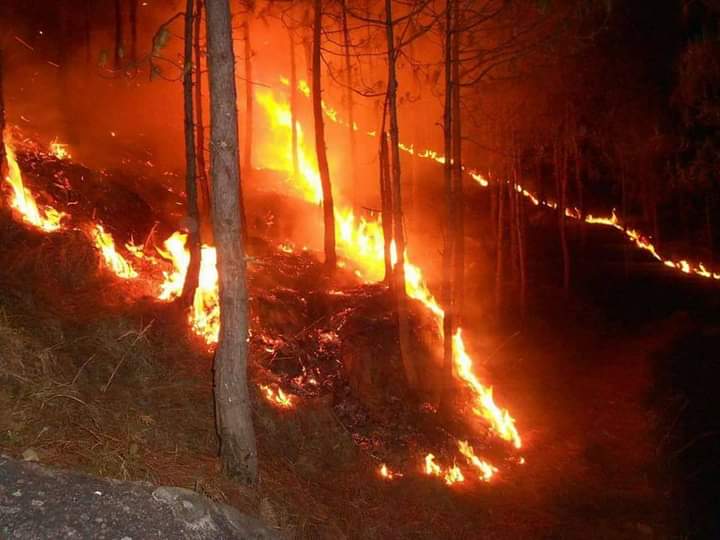 उत्तराखंड। राज्य में बारिश ना होने के कारण पिछले कई दिनों से तापमान में लगातार बढ़ोतरी दर्ज हो रही है जिससे कि राज्य के जंगलों को भी काफी नुकसान पहुंच रहा है। चढ़ते पारे के कारण जंगल फिर से धधकने लग गए हैं। 2 दिन पहले मनकोट और कठपुड़िया के जंगल में आग लगी थी और बीते सोमवार से लगातार गोलना का जंगल धधक रहा है। जलते जंगलों को देख ग्रामीणों ने इसकी सूचना वन विभाग को दी जिसके बाद वन विभाग के कर्मचारी मौके पर पहुंचे और आग बुझाने के प्रयास में जुट गए। बता दें कि जलते जंगलों के कारण वातावरण में धुंध छाई हुई है जिससे कि प्रदूषण और अधिक बढ़ रहा है। लगातार जल रहे जंगलों से वन संपदा और जल स्रोत दोनों को भारी नुकसान हो रहा है।जलते जंगलों को देख लोगों ने अराजक तत्वों के खिलाफ कार्यवाही और जंगलों की आग पर काबू पाने की मांग की है।