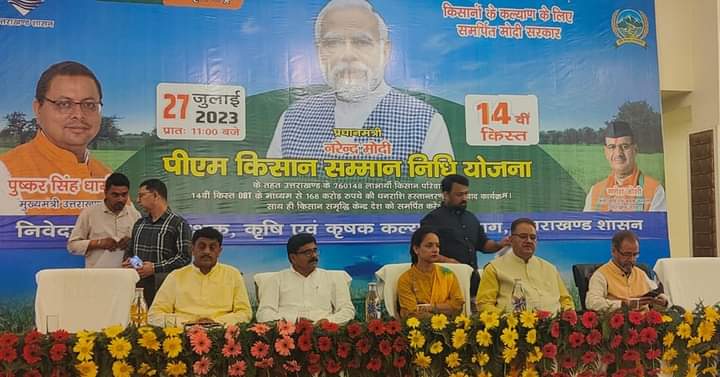 सुभाष रोड स्थित एक होटल में कृषि विभाग की ओर से आयोजित कार्यक्रम में कृषि मंत्री गणेश जोशी व किसानों ने वर्चुअल रूप से पीएम मोदी का लाइव प्रसारण देखा| इस मौके पर कृषि मंत्री ने कहा कि प्रधानमंत्री मोदी को देश के किसानों की चिंता है| वर्ष 2018 में प्रधानमंत्री किसान सम्मान निधि योजना लागू की गई थी| आज योजना के तहत प्रदेश के किसानों को 2065 करोड़ की राशि जारी की गई है| प्रधानमंत्री ने कृषि क्षेत्र का बजट बढ़ाया है| कांग्रेस सरकार के समय केंद्र से 1 रुपया मिलता था| जिसमें पात्र लोगों तक मात्र 15 पैसे ही पहुंचते थे|