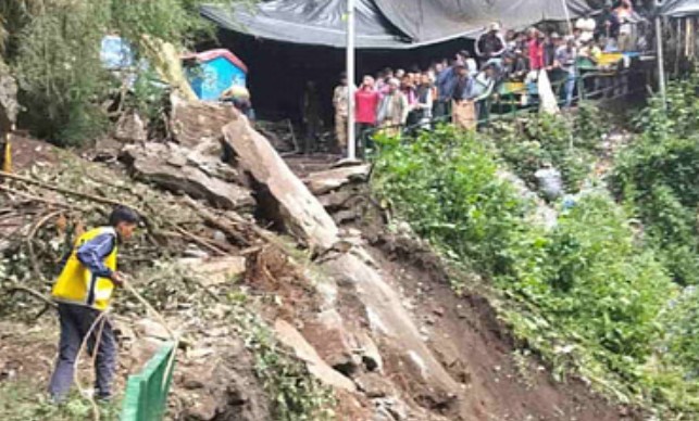 उत्तराखंड राज्य के यमुनोत्री पैदल मार्ग पर अचानक भूस्खलन होने से यात्री दब गए। इस दौरान सूचना मिलते ही पुलिस प्रशासन और एसडीआरएफ की टीम मौके पर पहुंची तथा सुरक्षा के लिहाज से यात्रा मार्ग पर अब आवाजाही रोक दी गई है। यमुनोत्री धाम के पैदल मार्ग पर अचानक पहाड़ी से भूस्खलन होने से अफरा तफरी मच गई। इस दौरान टीम द्वारा मुंबई निवासी एक यात्री रसिक को अस्पताल पहुंचाया गया है और अन्य दबे हुए लोगों को भी पुलिस द्वारा निकाला गया। राज्य में मानसून सीजन शुरू हो गया है और बारिश के चलते भूस्खलन का सामना भी लोगों को करना पड़ रहा है ऐसे में यात्रियों को यात्रा करने में काफी परेशानियों का सामना करना पड़ रहा है।
