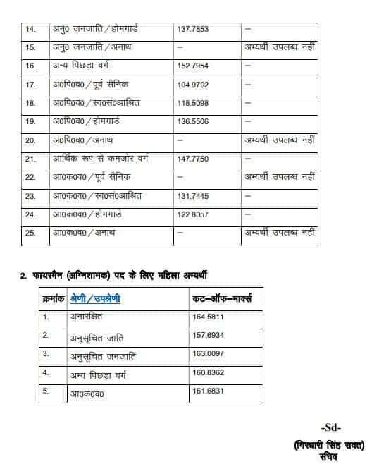 जिसके अनुसार अनारक्षित श्रेणी में 156 अंक और अनुसूचित जाति में 148 अंक की कटऑफ रही है| अब 17 फरवरी से मेरिट में आए अभ्यर्थियों से वरीयता ली जाएगी| 27 फरवरी से आयोग कार्यालय में दस्तावेजों का सत्यापन किया जाएगा|