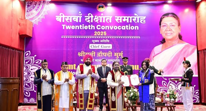 राष्ट्रपति द्रौपदी मुर्मू ने कुमाऊं विश्वविद्यालय के 20वें दीक्षांत समारोह में बतौर मुख्यमंत्री शामिल होकर विद्यार्थियों को गोल्ड मेडल दिए। समारोह में राष्ट्रपति ने बतौर मुख्य अतिथि प्रतिभाग किया इस दौरान उन्होंने उत्कृष्ट प्रदर्शन करने वाले विद्यार्थियों को गोल्ड मेडल और उपाधियां प्रदान की। इस दौरान राज्यपाल लेफ्टिनेंट जनरल गुरमीत सिंह भी उपस्थित रहे और दीक्षांत समारोह में संबोधित करते हुए राष्ट्रपति का कहना था कि शिक्षा किसी भी राष्ट्र के विकास की नीव होती है इसलिए शिक्षा का उद्देश्य केवल विद्यार्थियों की वृद्धि और कौशल का विकास करना ही नहीं बल्कि उनके नैतिक बल और चरित्र को भी सुदृढ़ बनाना होता है। उन्होंने विद्यार्थियों से आग्रह करते हुए कहा कि वे अपनी शिक्षा को वंचित वर्गों की सेवा और राष्ट्र निर्माण के कार्य में समर्पित करें यही सच्चा धर्म है और उन्हें इसी से सच्चा सुख तथा संतोष प्राप्त होगा।