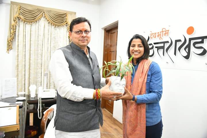 मुख्यमंत्री पुष्कर सिंह धामी ने मुख्यमंत्री आवास में भारतीय महिला क्रिकेटर टीम की खिलाड़ी स्नेह राणा ने शिष्टाचार भेंट की और मुख्यमंत्री ने उनके खेल के प्रदर्शन एवं देश को सम्मान दिलाने के लिए उन्हें सम्मानित भी किया|