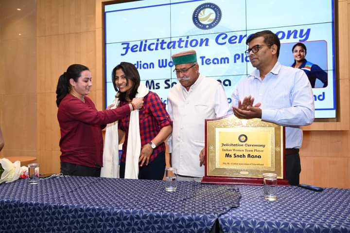 देहरादून| भारतीय सीनियर महिला क्रिकेट टीम की सदस्य को घरेलू क्रिकेट में रेलवे की ओर से खेलने वाली स्नेह राणा ने कहा कि मैं उत्तराखंड की रहने वाली हूं| मैं भी भविष्य में उत्तराखंड से खेलना चाहती हूं| उन्होंने कहा कि जब भी उत्तराखंड की टीम जीतती है तो खुशी होती है और मैं गर्व से कहती हूं कि हमारे उत्तराखंड की टीम जीती है| स्नेह ने क्रिकेट एसोसिएशन ऑफ उत्तराखंड (CAU) के कामकाज की सराहना करते हुए कहा कि यहां विशेषकर महिला क्रिकेट को बढ़ावा देने के लिए बेहतर कार्य किया जा रहा है| जिसके लिए सीएयू बधाई का पात्र है| क्रिकेट एसोसिएशन ऑफ उत्तराखंड की ओर से राजपुर रोड स्थित एक होटल में सम्मान समारोह आयोजित किया गया इस दौरान सीएयू अध्यक्ष जोत सिंह गुनसोला ने स्नेह राणा को पुष्पगुच्छ भेंट कर सम्मानित किया| स्नेह राणा ने कहा कि मैं भले ही रेलवे के लिए खेलती हूं लेकिन जब भी उत्तराखंड की टीम जीत दर्ज करती है तो मैं वहां भी कहती हूं कि हमारे राज्य की टीम ने जीत दर्ज की है|