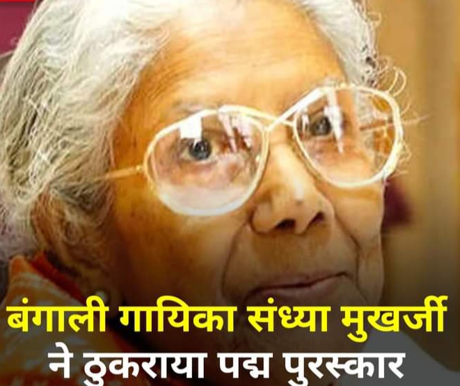 नई दिल्ली| गणतंत्र दिवस के मौके पर भारत सरकार ने पद्मश्री और पद्म पुरस्कार की घोषणा की| जिसमें कला, खेल, साहित्य और सामाजिक क्षेत्रों में अपने खास योगदान देने वाली हस्तियों को इस पुरस्कार से सम्मानित किया गया है| इसी में हिंदी सिनेमा की मशहूर और दिक्कत गायिका संध्या मुखर्जी उर्फ संध्या मुखोपाध्याय को पद्मश्री पुरस्कार से सम्मानित किया गया| लेकिन उन्होंने यह सम्मान देने से मना कर दिया|